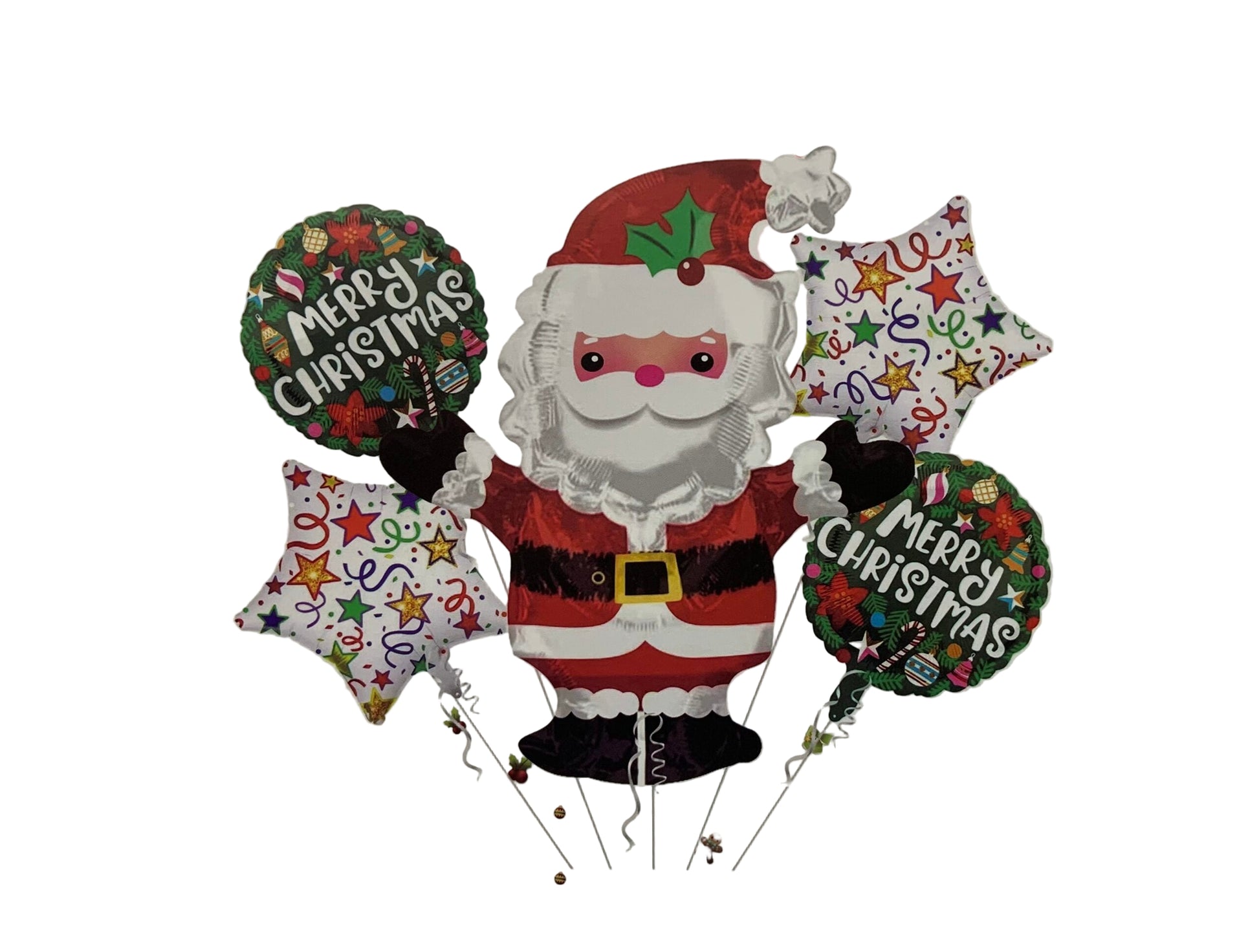 - PACK INCLUDES: 5 BALLOONS: 1 Santa Claus Shaped Foil | 2 Green Merry Christmas Balloons | 2 White Star Foil Balloons